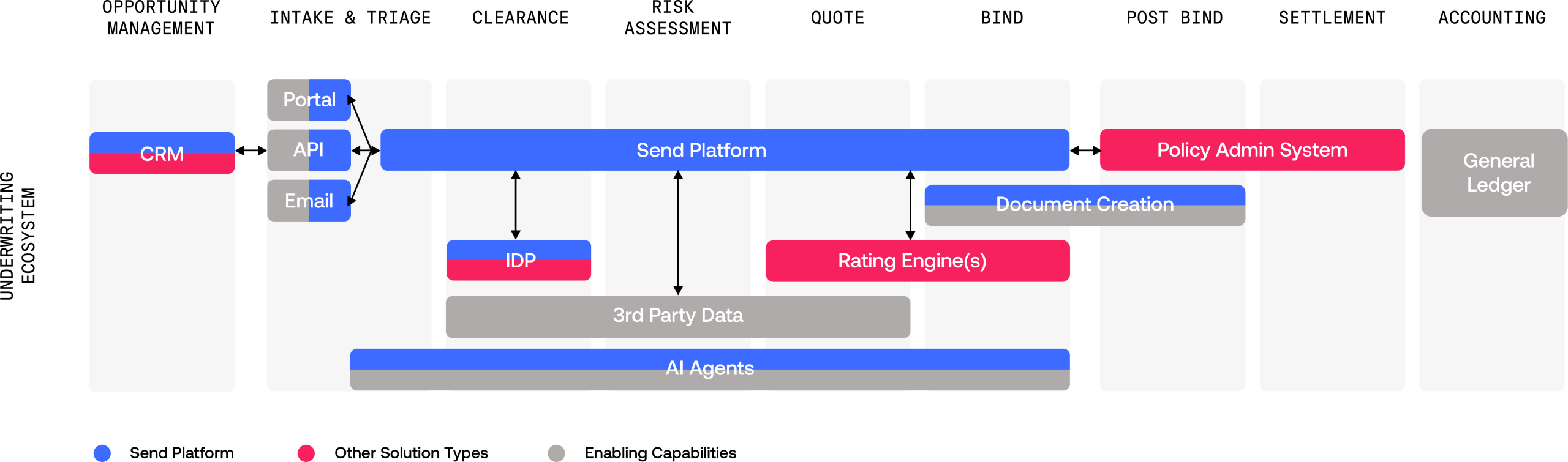 - Underwriting Platform (e.g. Send) → purpose-built solutions designed to digitise and modernise the pre-bind process.